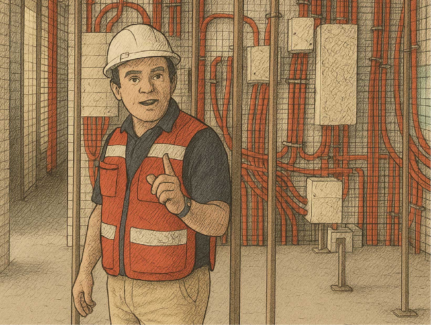 System installation (Electrical, Plumbing, HVAC, Voice & Data, etc.): All systems are located, the Paneleco panel is channeled (grooved), and the utilities are installed.